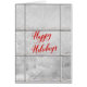 Landstraße und Winterwaldszene mit Schneeflocken und Fensterrahmen für Weihnachten