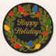 Happy Holidays Wreath Christmas Lights and Holly Runder Pappuntersetzer