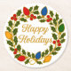 Happy Holidays Wreath Christmas Lights and Holly Runder Pappuntersetzer