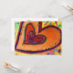 Ein kleines lila Herz ist umgeben von einem roten Herz in Orangenherzen. Die Herzen sind grün, lila und rot dargestellt. Das Aquarell ist weich gelb mit bunten Konfetti-Punkten. Eine leichte Goldschicht und ein roter Glitzer spuren die Herzkanten. Malerdetails aus dem Inspirationswort "Happy" Kunstwerk. Personalisieren Sie diese Einladung mit Ihrem eigenen Text und Bildern mit der Option Custom It, um Ihre eigenen besonderen Einladungen zu machen! Erlöse aus dem Verkauf dieser Einladung unterstützen DonnaBellas Angels, eine 501(c)3 Non-Profit.