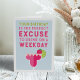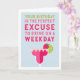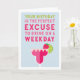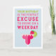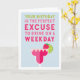 Diese lustige Geburtstagskarte ist perfekt für Ihren Happy Hour Buddy und lautet: "Ihr Geburtstag ist die perfekte Ausrede, um an einem Wochentag zu trinken" in farbenfroher Schrift mit einer fruchtigen Rosa- und Rot-Margarita-Cocktail-Illustration. Passen Sie Ihre eigene, vorgedruckte Nachricht an oder verließ Sie den Beispieltext (mit "Beifall für Sie - Geburtstag zum Glück" gezeigt).