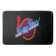 Gute Stunde Neonzeichen auf einer schwarzen Badematte. Ein Duschvorhang passt dazu.