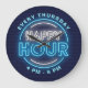 Happy Hour Neon signieren Stil Text, in blau und weiß mit anpassbarem weißen Text für Zeit und Tag.