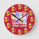 Jede Stunde ist Happy Hour mit dieser stilvollen Uhr. Statt Zahlen sehen Sie nur Bier! Ein roter Hintergrund und einige farbenfrohe Buchstaben, die Happy Hour ausdrücken. Gutes Geschenk für einen Bar-Besitzer oder einfach nur, um über Ihre Zuhause Bar.