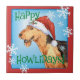 Feiern Sie die Urlaubssaison mit einem glücklichen Airedale Terrier mit einer Weihnachtsmannmütze, umgeben von Schneeflocken und den Worten, Happy Howlidays! Eine tolle Geschenkidee für Familie und Freunde, die Airedale lieben.