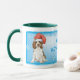 Feiern Sie die Urlaubssaison mit niedlichen englischen Springer Spaniel Welpen, die Weihnachtsmannmützen tragen, inmitten von Schneeflocken und den Worten, Happy Howlidays! Eine tolle Geschenkidee für die Springer-Liebhaber.