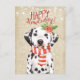 Whimsical dalmatenisches Hunddesign mit festlichen Beschneiungen und einem Schneeflockhintergrund. Ideal, um Ihren Hund liebenden Freunden einen "fröhlichen Urlaub" zu wünschen...! Leicht zu bearbeiten oder zu löschen das Textfeld auf der Rückseite. Andere Artikel mit diesem Design in meinem Shop erhältlich.