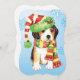 Feiern Sie die Urlaubssaison mit einem niedlichen Beagle-Welpe mit einem Strumpf Hut und Schal inmitten von Schneeflocken mit den Worten, Happy Howlidays auf der Rückseite! Ideal für Beagle liebende Familien und Freunde.