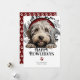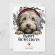 Happy Howlidays Bergamasco Weihnachtskarte von Ricaso - entworfen mit einem wunderschönen typografischen Happy Howlidays Text auf die Vorderseite - eine lustige Hundeschema-Urlaubskarte, verdient Ihr Furry Familienmitglied, seine eigenen Urlaubssgrüße zu verschicken .. einfach, um Ihren eigenen Text und Foto hinzuzufügen - mit einem lustigen und kalten Pfahlmuster auf die Rückseite