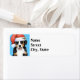 Gute Ferien! Benutzen Sie diese Labels eines niedlichen Berner Hundes, der eine Weihnachtsmannmütze trägt, wenn er Weihnachten Grüße schickt. Gut zu senden, um Ihre Familie und Freunde, die Liebe Berners.