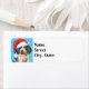 Gute Ferien! Verwenden Sie diese Etiketten eines niedlichen Bluetick Coonhound Welpen mit einer Weihnachtsmannmütze, wenn Sie Grüße zu Weihnachten. Gut zu senden, um Ihre Familie und Freunde, die Liebe Blueticks.