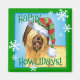 Feiern Sie die Urlaubssaison mit einem glücklichen Briard mit einem Strumpf, der von Schneeflocken und den Worten umgeben ist, Happy Howlidays! Eine tolle Geschenkidee für eine briardliebende Familie und Freunde.