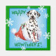 Feiern Sie die Urlaubssaison mit einem niedlichen Dalmatiner Welpe sitzend in einer Weihnachtsmannmütze inmitten von Schneeflocken und den Worten, Happy Howlidays! Eine tolle Geschenkidee für Dal-liebende Familie und Freunde.