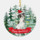 Niedliches datiertes englisches Pointer Dog Weihnachtsschmuck-Set auf Kiefer- und Fichtenholzhintergrund mit der Urlaubsbotschaft "Happy Howlidays" . Besuchen Sie unseren Shop, um eine große Auswahl an Hundebrotten zu sehen