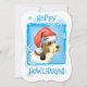 Feiern Sie die Urlaubssaison mit einem niedlichen Petit Basset Griffon Vendéen mit einer Weihnachtsmannmütze inmitten von Schneeflocken mit den Worten, Happy Howlidays! Ideal für PBGV-liebende Familien und Freunde.