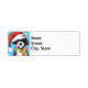 Gute Ferien! Benutzen Sie diese Etiketten eines niedlichen portugiesischen Wasserhundes, der eine Weihnachtsmannmütze und einen Schal trägt, wenn Sie Weihnachten Grüße schicken. Gut zu schicken an Ihre Familie und Freunde, die Liebe PWDs.