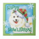 Feiern Sie den Urlaub mit einem glücklichen Samoyed mit einer gestreiften Strumpf-Kappe inmitten einer Flut von Schneeflocken und den Worten, Happy Howlidays! Eine tolle Geschenkidee für Sammie-liebende Familie und Freunde.