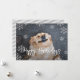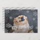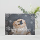 Stilvolle Pet-Urlaubskarte mit vollem Foto und silberfarbenem Glitzer-Snowflake-Rahmen-Overlay.
