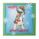 Feiern Sie die Urlaubssaison mit einem niedlichen Smooth Collie Welpe mit einem Strumpf Hut und Schal inmitten von Schneeflocken und den Worten, Happy Howlidays! Eine tolle Geschenkidee für Collie liebende Familien und Freunde.