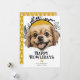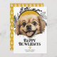 Happy Howlidays Tibetischer Spaniel Hund Hund Weihnachtskarte aus Ricaso - entworfen mit einem wunderschönen typografischen Happy Howlidays Text auf die Vorderseite - eine lustige Hundeschema-Urlaubskarte, verdient Ihr wütendes Familienmitglied, seine eigenen Urlaubssgrußkarten zu verschicken .. einfach, um Ihren eigenen Text und Foto hinzuzufügen - mit einem lustigen paw-Print-Muster auf die Rückseite