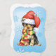 Feiern Sie die Urlaubssaison mit einem niedlichen Yorkshire Terrier Welpe, der eine Weihnachtsmannmütze und Schal trägt, inmitten von Schneeflocken mit den Worten, Happy Howlidays auf der Rückseite! Ideal für Yorkie-liebende Familien und Freunde.