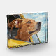 Happy Hund in Gelben Auto Art Print Fotoblock