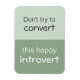 Nichts ist falsch daran, introvertiert zu werden. Geben Sie Leuten, die gewollt haben, Ihnen eine höfliche Botschaft mit diesem Slogan zu vermitteln, der lautet: "Versuchen Sie nicht, dieses glückliche Introvertierte zu konvertieren"