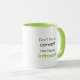 Nichts ist falsch daran, introvertiert zu werden. Geben Sie Leuten, die gewollt haben, Ihnen eine höflichere Botschaft mit diesem Slogan-T - Shirt zu vermitteln, der sagt: "Versuchen Sie nicht, dieses glückliche Introvertierte zu konvertieren". Textfarbe kann an die Tasse angepasst werden.