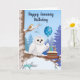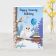 Happy January Birthday Snowy Owl with Cake Karte