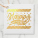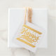 Happy Kwanzaa afroamerikanische goldene Folie auf einer Seite dieses Geschenketiketts, mit weißem Rücken und goldener Farbe An: und Von: Text