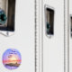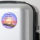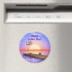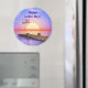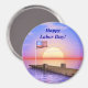 Ein Magnet mit meinem Computer-Kunstwerk eines Docks mit der amerikanischen Flagge und einer untergehenden Sonne. In dem Text steht "Happy Labour Day".