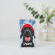 Happy Labrador in einer Roten Beanie Unter blauem Visitenkarte