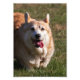 Eine süße Weibchen walisischer Corgi fotografierte während sie im Frühjahr über ein grasbedecktes Feld lief.