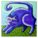 Meine abstrakte, funky Malerei einer glücklichen lila Katze macht jeden Katzenliebhaber Purpurreif!