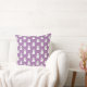 Boo! Die Kissengestaltung von Halloween Wohngestaltung zeichnet sich durch ein fröhliches Schwarz-Weiß-Fluggeister-Muster aus, das mit einer lila Hintergrundfarbe, die an die jeweiligen Gegebenheiten angepasst ist, kombiniert wird.