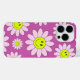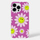 Dieses Design bietet glückliche Smileys Blume vor einem lila Hintergrund.