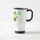 Ein glücklicher Kobold hält ein irisches Kleeblatt.