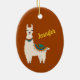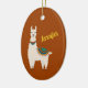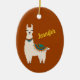 Happy Llama with Name on Red Ceramic Ornament