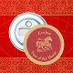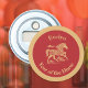 This round bottle opener can help you celebrate the Chinese Lunar New Year of 2026, which is the zodiac Year of the Horse. Commemorate the prosperity and good fortune of the year with this gold look scrollwork horse and clouds on a deep red background, encircled in gold. The phrase "Year of the Horse" appears in a festive typeface, but you can edit the text, such as replacing with your monogram, as long as it fits within the design