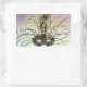 Kunstmalerei einer Mardi Gras Federmaske und der Gruß "Happy Mardi Gras". Die Farbtöne sind goldfarben, lila und grün gehalten. Die Mardi Gras Aufkleber und Aufkleber können personalisiert sein, um Ihre eigene Nachricht hinzuzufügen.