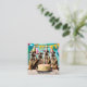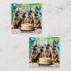 Vier Meerkatze, drei Geburtstagshaats und Stehende Geburtstagskuchen mit den schönen Worten zum Geburtstag. Dieses Design hat eine individuell anpassbare Vorderseite und Rückseite.