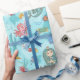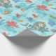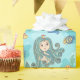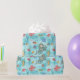 Eine hübsche Schwimmmerin mit ihren Freunden, die Geburtstage mit einem Umschlagpapier feiern.