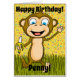 Ein glücklicher Affe macht diese lustige Geburtstagskarte aus. Anpassbar, sodass Sie Ihren eigenen Text hinzufügen und die Hintergrundfarbe ändern können.