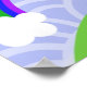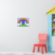 Die hellen Farben des Regenbogens und die knechten blauen Wellen im Hintergrund scheinen die fröhliche Stimmung dieses niedlichen kleinen blauen Monsters zu widerspiegeln.