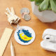 Ein Happy Gelb Moon Gesicht mit einem blauen und weißen Hut. Dieses Design wirkt auf diesem Schlüsselanhänger wirklich effektiv