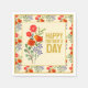 Custom Happy Mother's Day Servietten, mit eleganter Goldtypografie. Moderne rote, orangefarbene und lila Wildblumen. Alle Texte sind anpassbar, damit Sie ein einzigartiges Geschenk für Mama machen können.