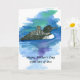 Eine Muttertagskarte mit einem schwarz-weißen Ballon und ihrer Loonette auf ihrem Rücken, während sie an einem ruhigen Tag mit Tinte und Aquarell durch das Wasser gleiten. Auf der Innenseite ist das gleiche Bild, aber verblasst und Sie können die Nachricht nach Ihren Bedürfnissen bearbeiten.
