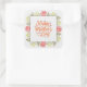 Happy Mother's Day' Pink Watercolor Flower Quadratischer Aufkleber