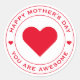 Happy Mother's Day White Red Heart Fun Einzigartig Runder Aufkleber
