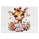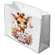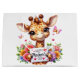 Ein Niedliches Baby-Giraffe mit einem glücklichen Muttertag, das mit Florals und Schmetterlingen unterschreibt, große Geschenktasche